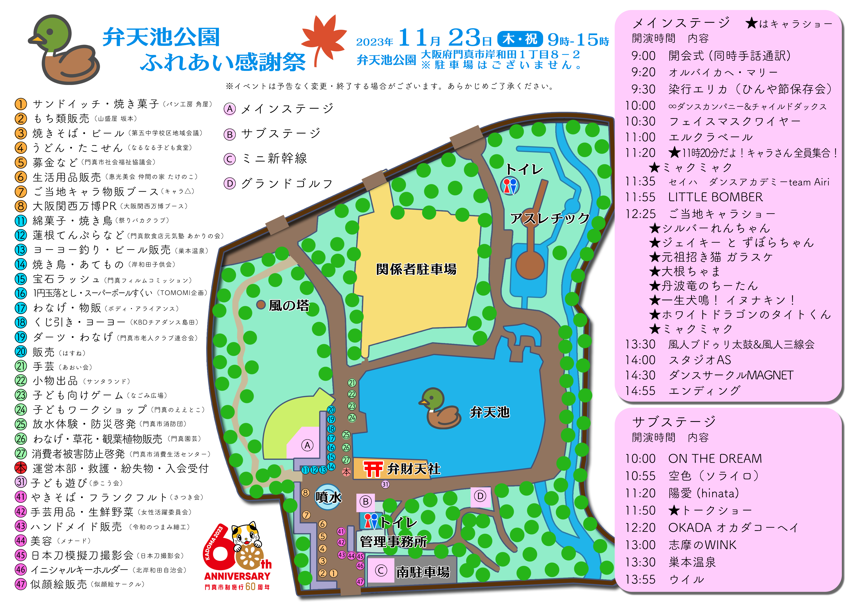 もちろん、「シルバーれんちゃん」、「ガラスケ」、「ジェイキー と ずぼらちゃん」の門真市のご当地キャラも来るよ!